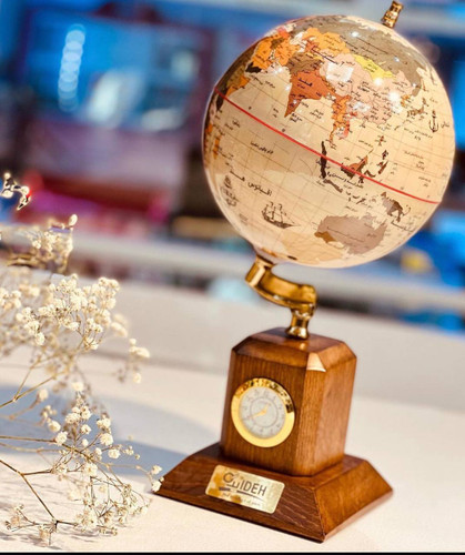 کره زمین پایه چوبی ساعت دار سایز14 مارک ایده کد109