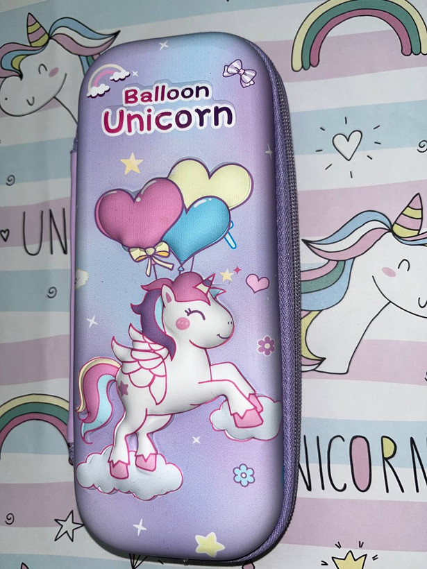 جامدادی کتابی زیپی کوچک طرح یونی کورن بنفش رنگ بسیار باکیفیت بالا می باشد در سایز 24/10