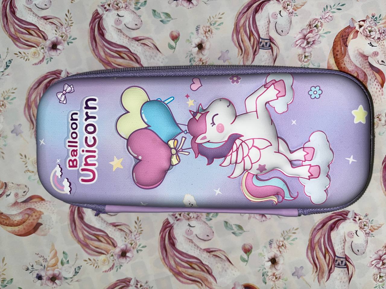 جامدادی کتابی زیپی کوچک طرح یونی کورن بنفش رنگ بسیار باکیفیت بالا می باشد در سایز 24/10