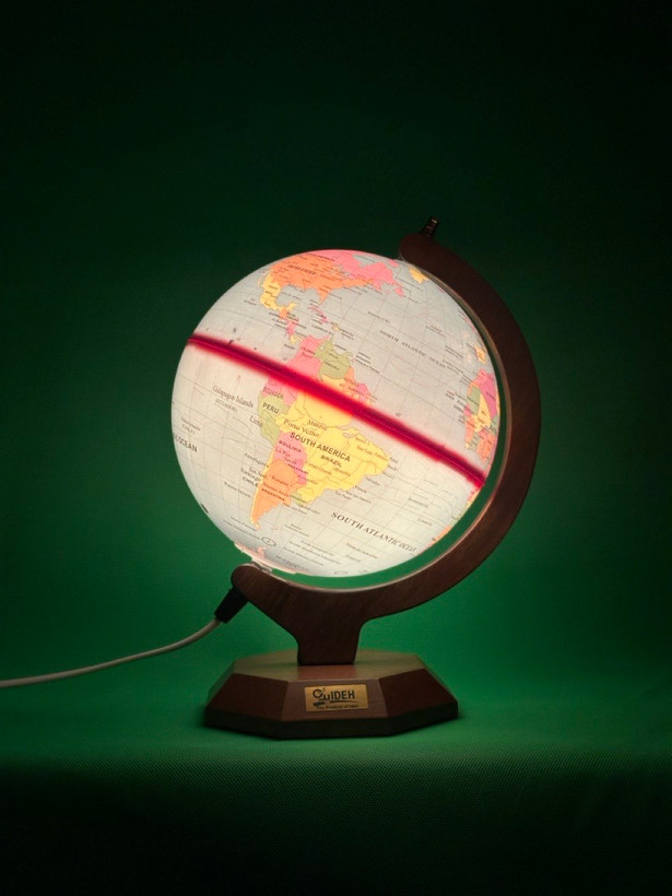 کره زمین چراغدار پایه چوبی چندضلعی کد117