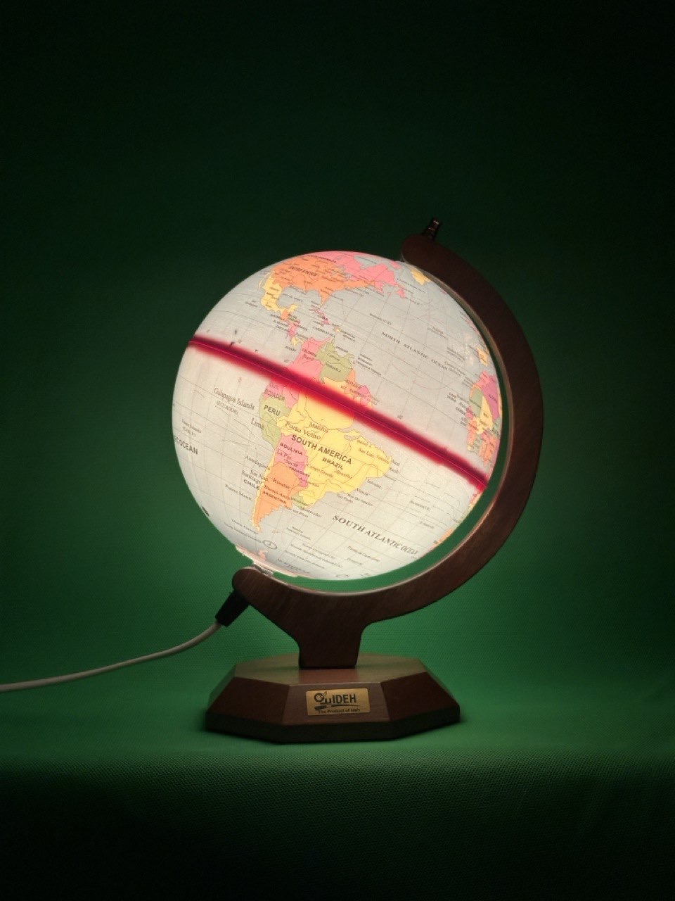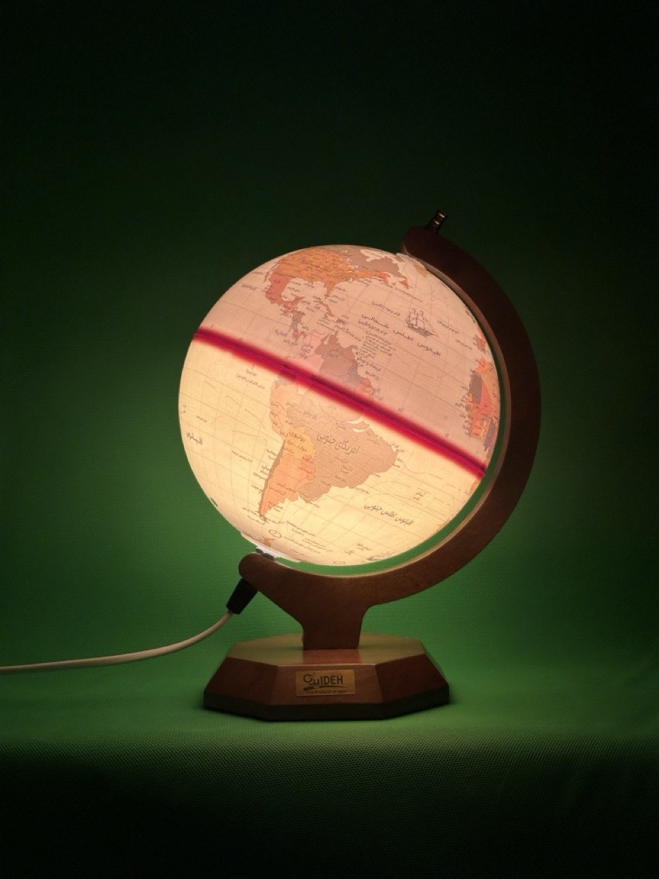 کره زمین چراغدار پایه چوبی چندضلعی کد117