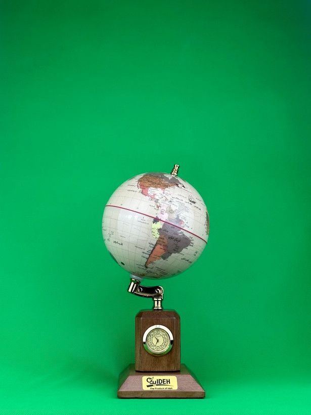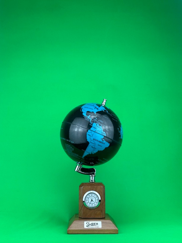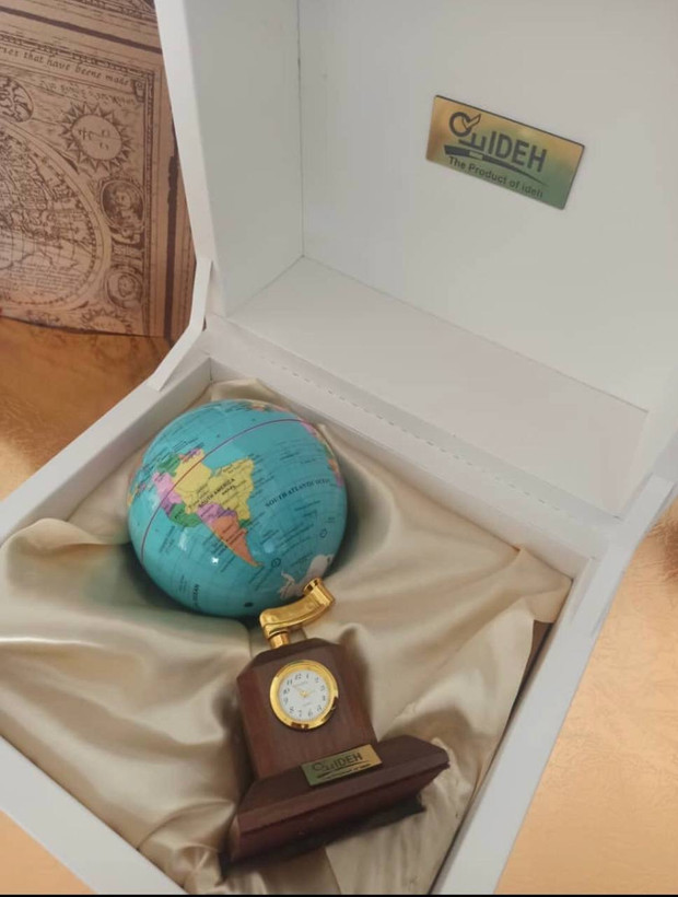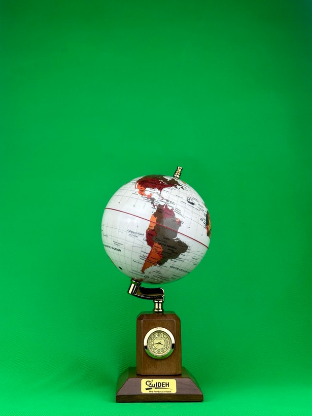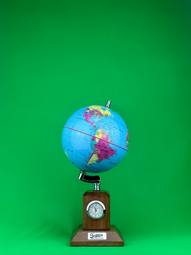 کره زمین پایه چوبی ساعت دار سایز١٤ مارک ایده کد١٠٩