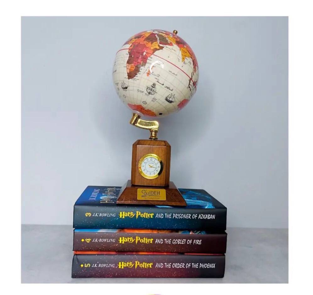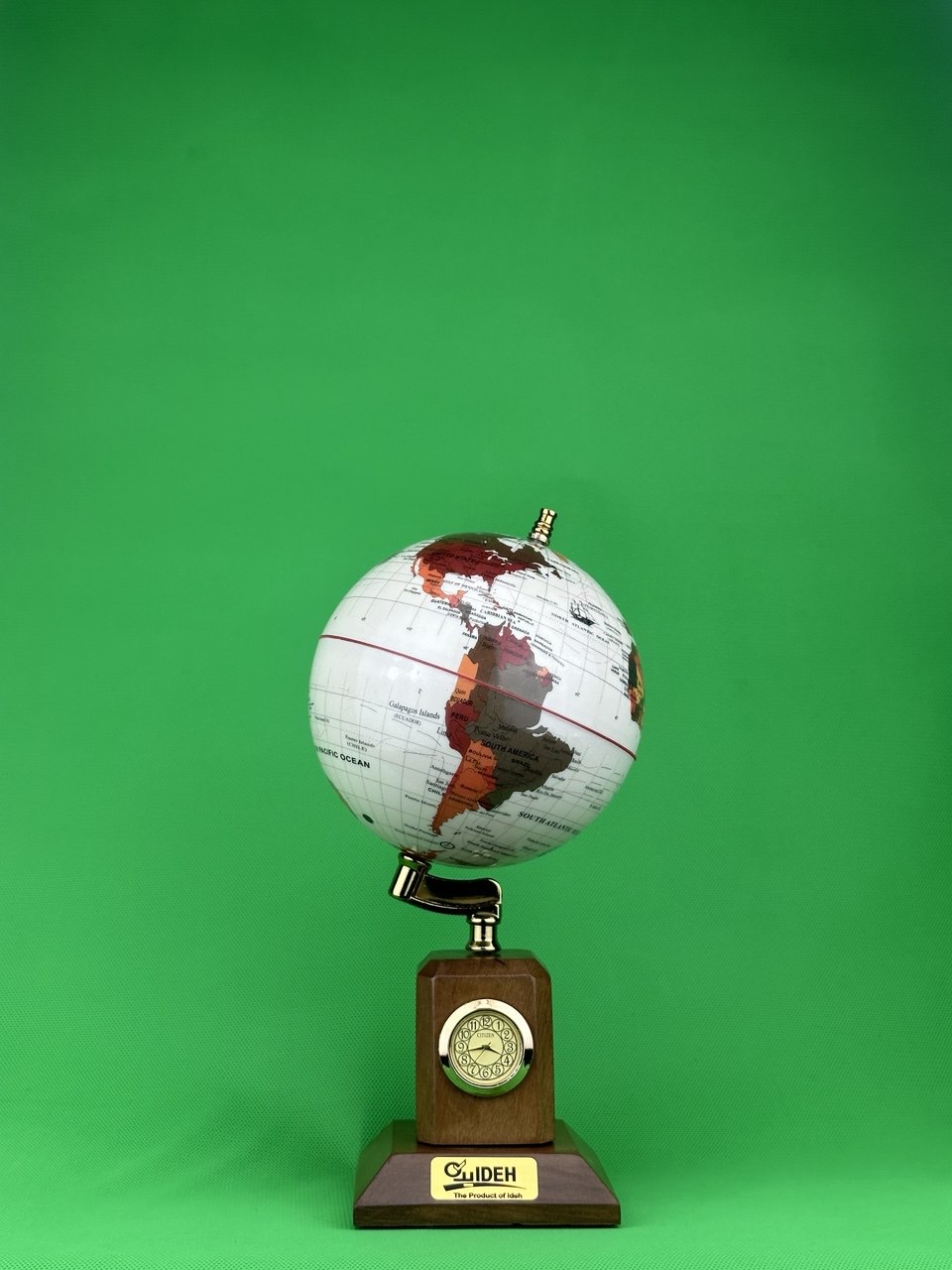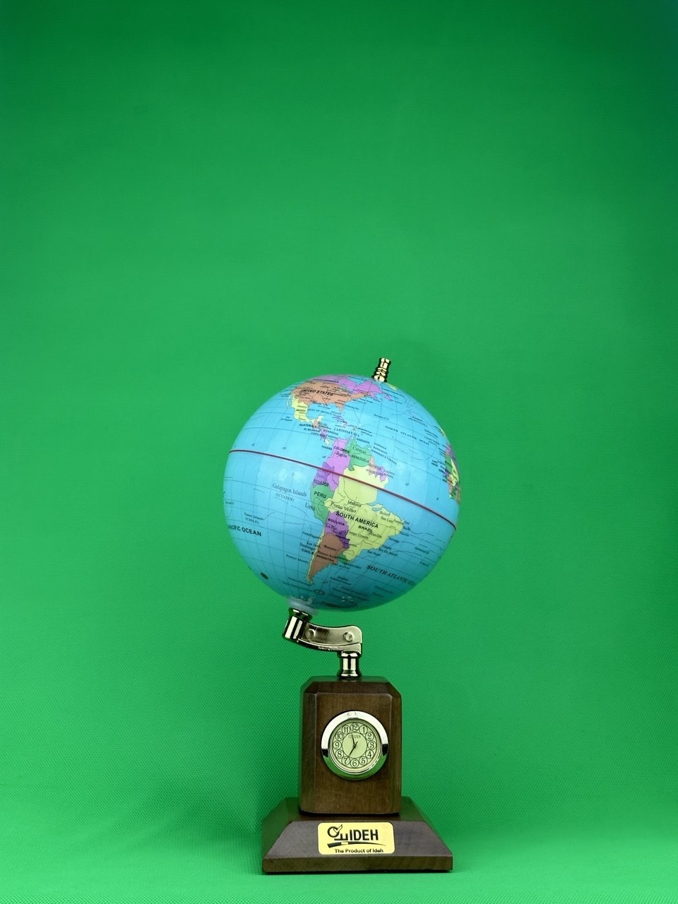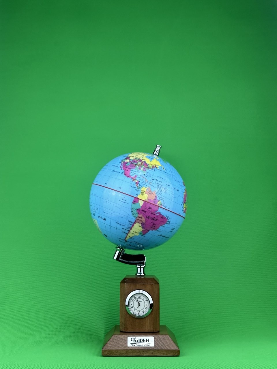 کره زمین پایه چوبی ساعت دار سایز١٤ مارک ایده کد١٠٩