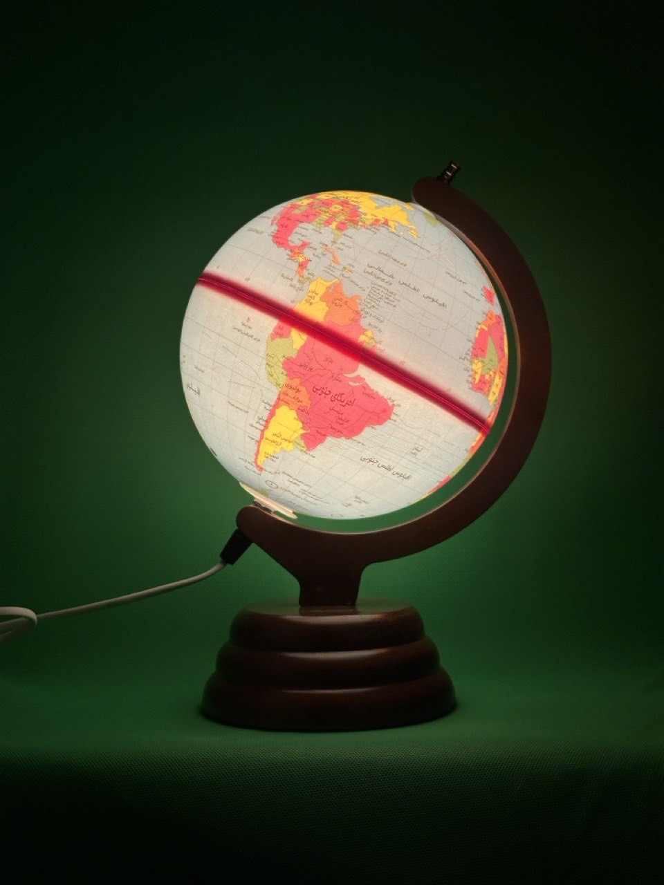 کره زمین پایه چوبی چراغ دار سایز20 کد 117